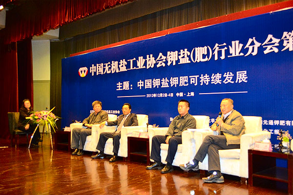 2012年12月3日,中國無機鹽工業協會鉀鹽(肥)行業分會第七屆年會在上海舉行。趙思儉董事長應邀參加本屆年會,并與鉀鹽行業的相關領導和專家進行了深入交流。