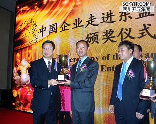 集團(tuán)憑借老撾鉀鹽項(xiàng)目的成功開發(fā),贏得了東盟商務(wù)理事會(huì)的高度贊賞,趙董事長(zhǎng)也因此榮膺“走進(jìn)東盟優(yōu)秀企業(yè)家”稱號(hào)。(圖為集團(tuán)副總裁劉仲輝代表趙董事長(zhǎng)領(lǐng)獎(jiǎng),頒獎(jiǎng)嘉賓為中國貿(mào)促會(huì)副會(huì)長(zhǎng)于平)。