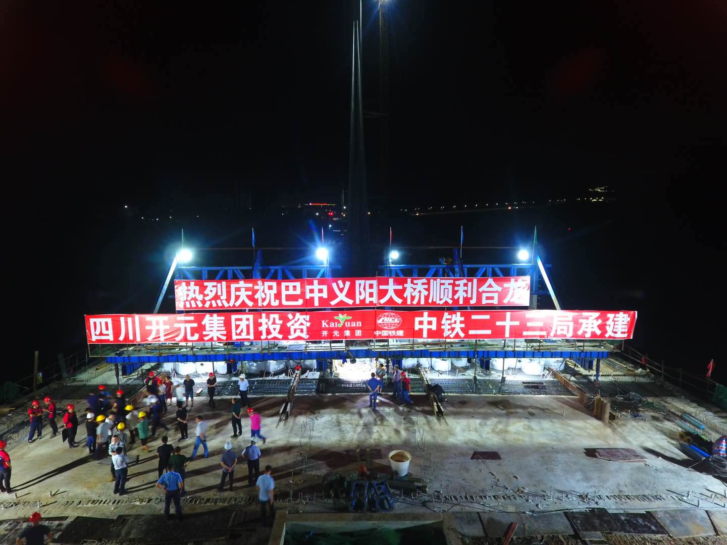 6月28日晚23點,煙花璀璨,鞭炮齊鳴,隨著最后30方混凝土澆灌作業(yè)的順利進行,歷時4年建設的義陽大橋實現合龍,標志著巴中以及川東北地區(qū)首個特大異型獨臂斜拉橋的主體工程順利完工。巴中恩陽新區(qū),一座嶄新地標巍然屹立。而達成基建狂魔這一新成就的正是四川開元集團。