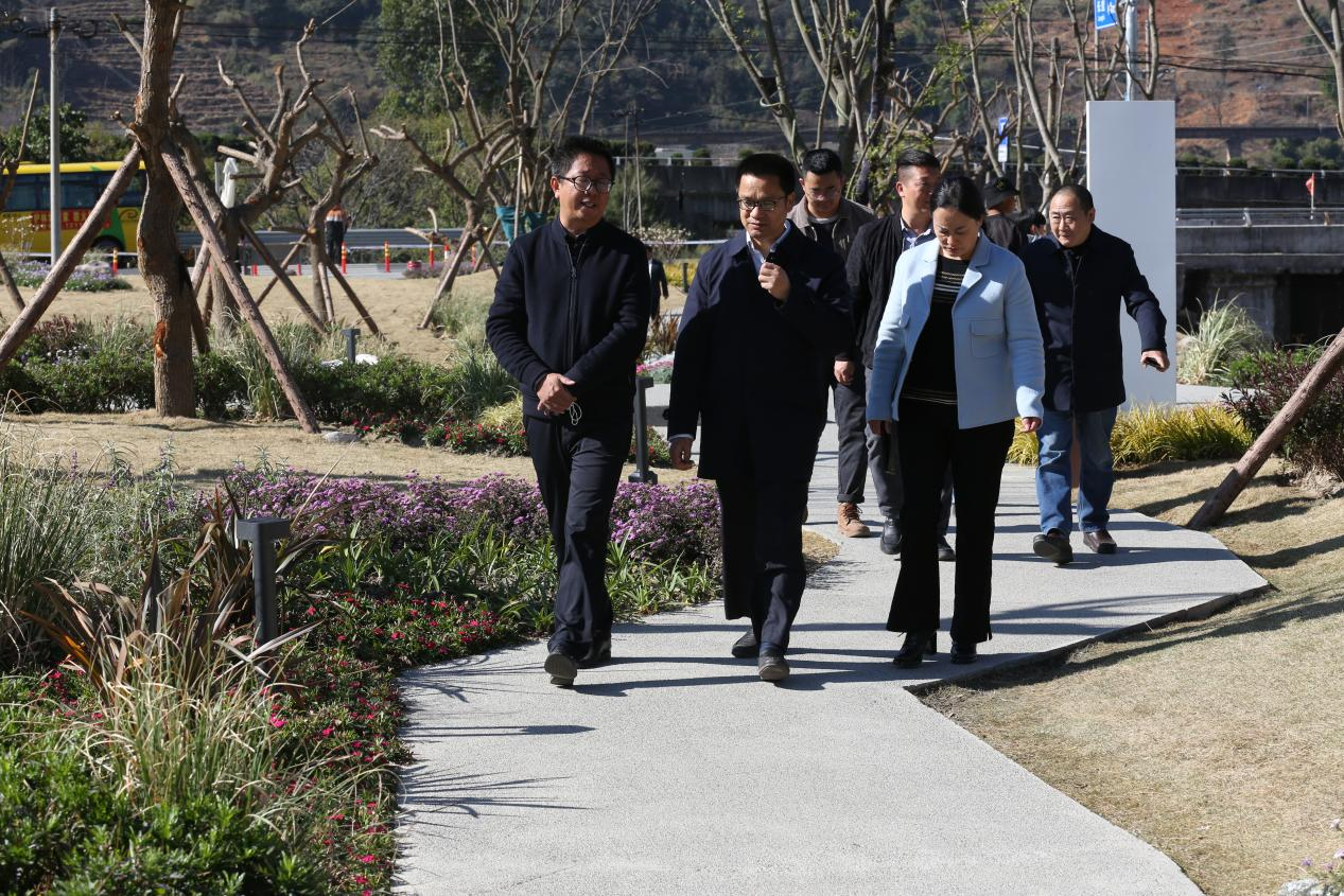 李總陪同萬書記參觀了公園溪地景觀,并就項目的規(guī)劃設(shè)計理念和景觀建設(shè)的相關(guān)情況進(jìn)行了介紹。