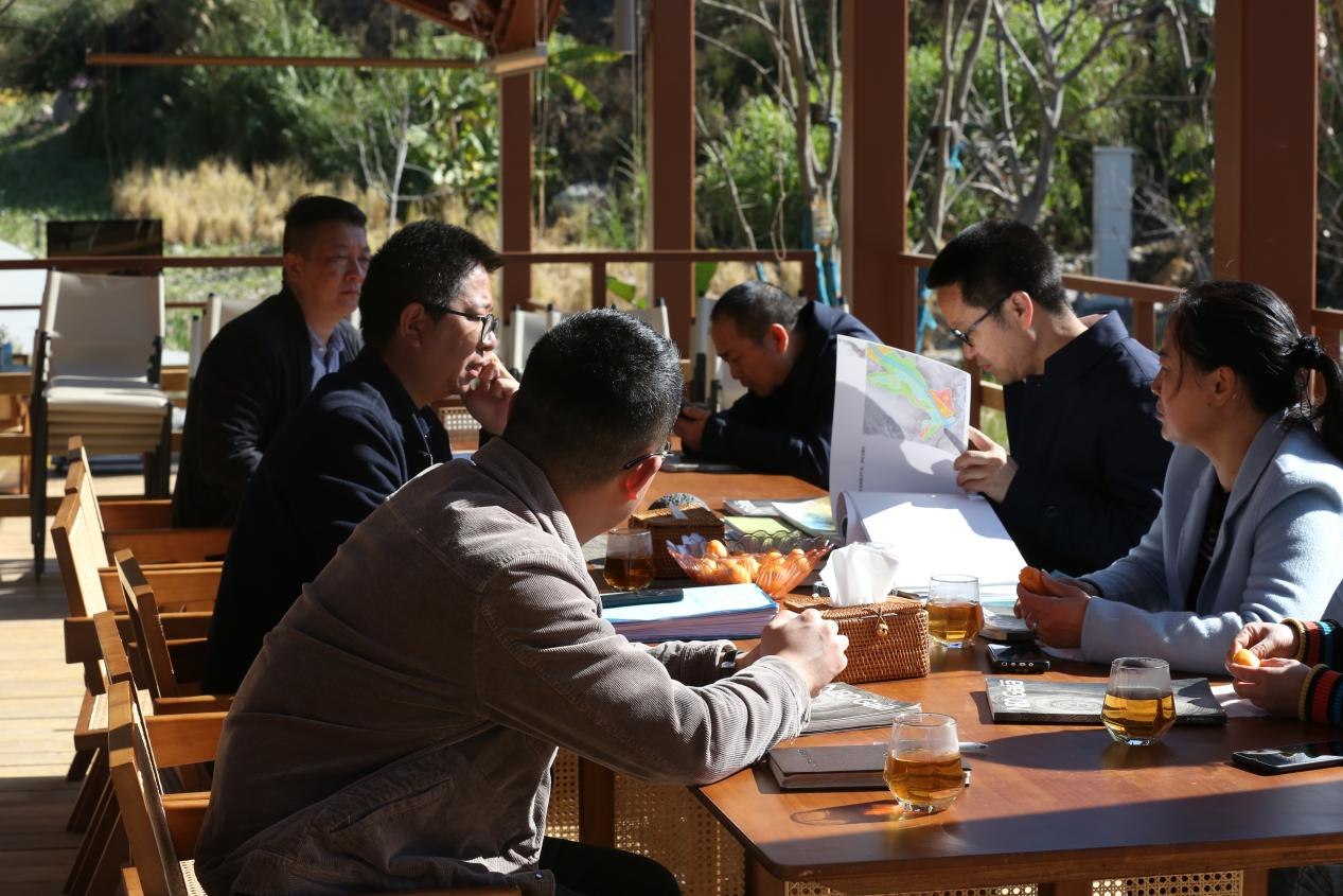 在澗茶臺,萬書記詳細(xì)翻閱了海花溝總體規(guī)劃設(shè)計相關(guān)資料,并關(guān)切地詢問項目目前土地的落實情況,李總就書記關(guān)心的方面作了細(xì)致匯報和說明。