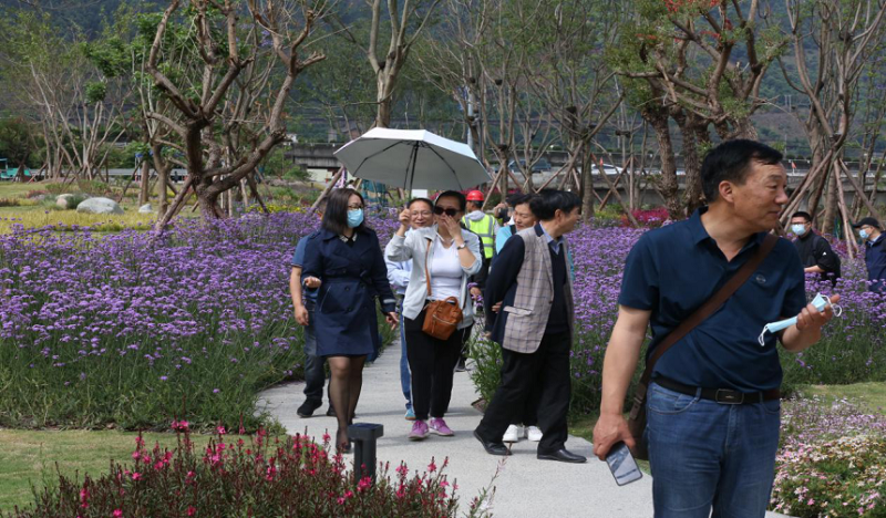 在游覽過(guò)程中,許多老師對(duì)項(xiàng)目的整體設(shè)計(jì)和景觀呈現(xiàn)情況交口稱贊,并向同行工作人員了解的當(dāng)?shù)氐臍夂颉囟?、物產(chǎn)等方面的具體情況。