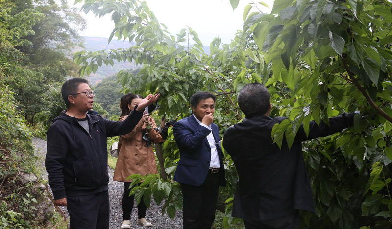 在果園林蔭小道,苗主席和王院長興致勃勃地體驗了桑葚采摘,在細細品嘗后對香甜的水果贊不絕口。