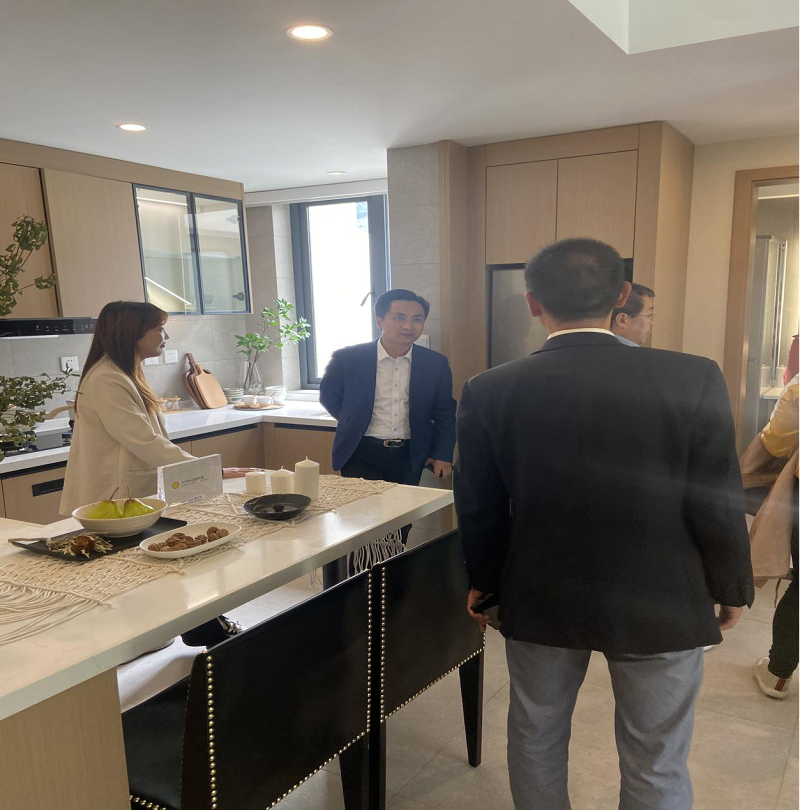 隨后,營銷工作人員陪同客人們前往樣板房實地考察。在對戶型、朝向、采光和環境等方面進行細致咨詢和了解后,苗主席當即決定在此置業,并選擇了心儀的居所。他表示,通過這兩天的考察,?;仙角嗨憔懊溃遣豢啥嗟玫囊司又?,非常憧憬在此的自然生活。