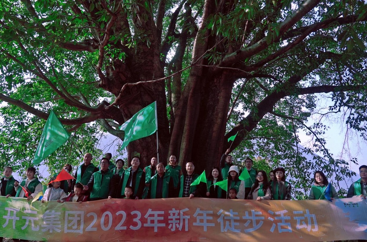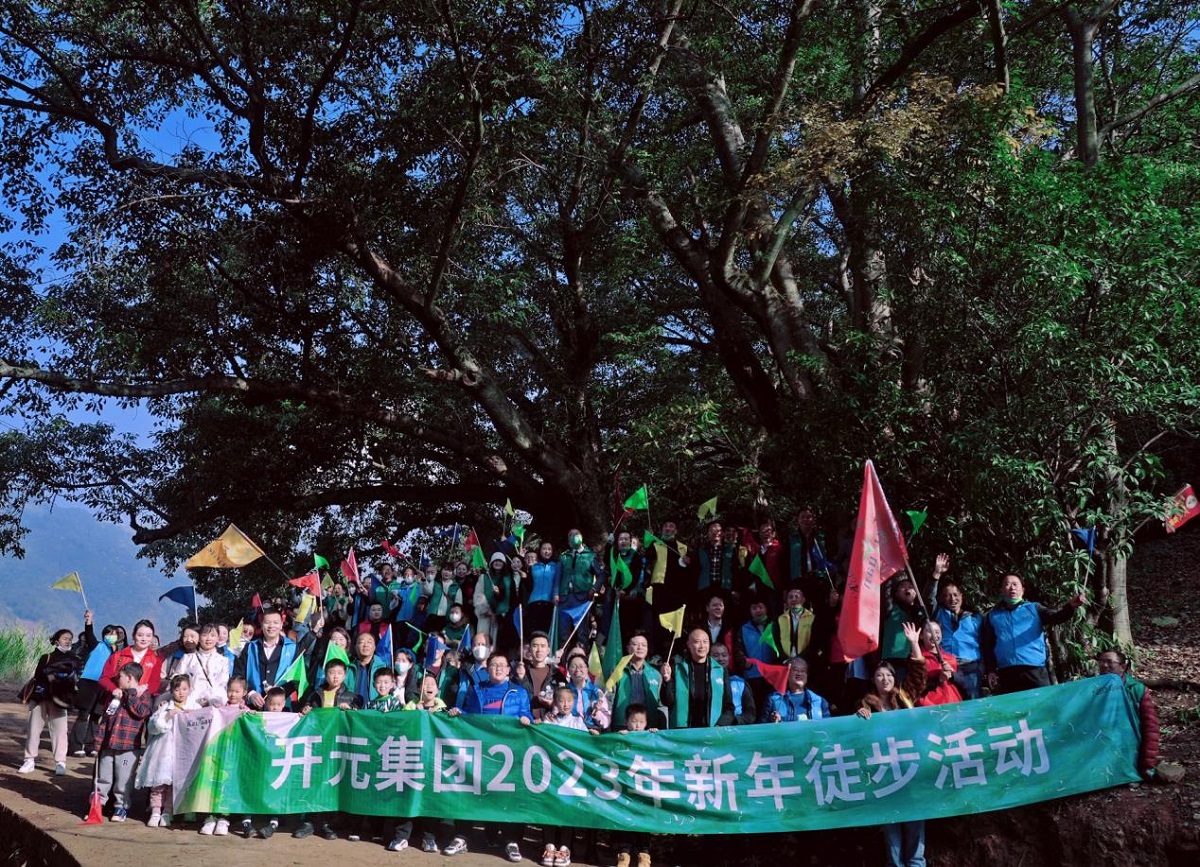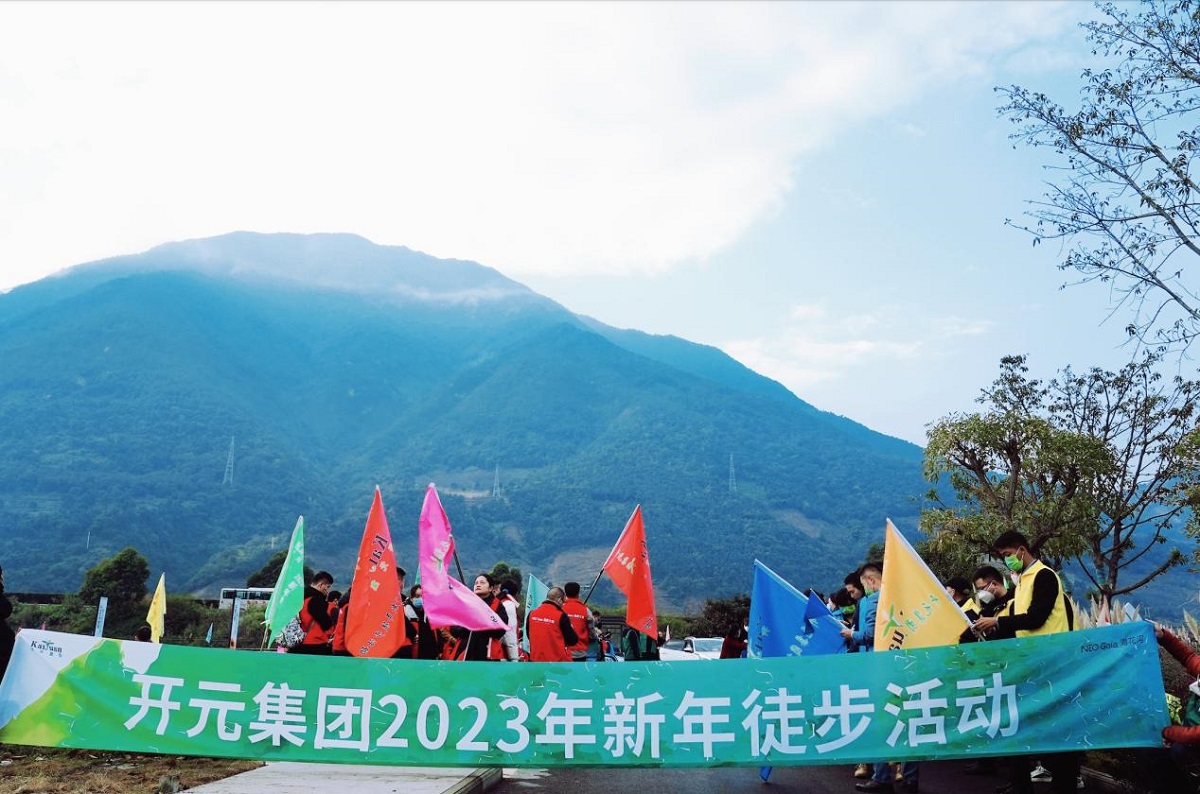 新年徒步活動于海花溝溝口出發,200余人的徒步隊伍彩旗招展,整裝待發。